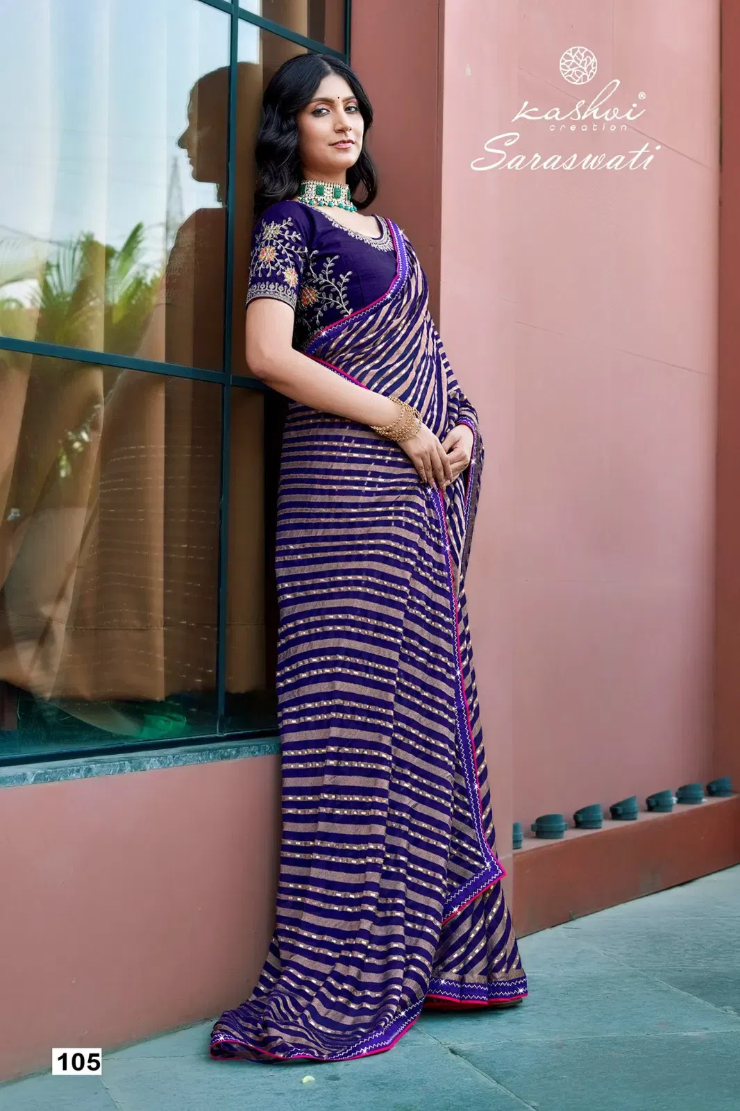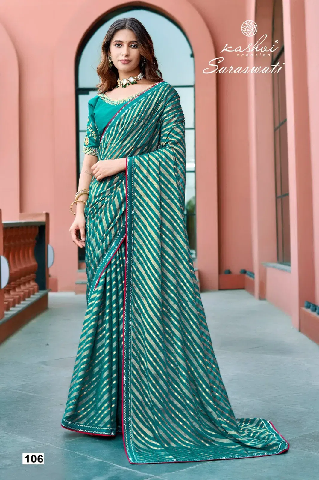 Kashvi Saraswati Dull Moss Brasso With Work Saree Collection Wholesale wholesale ideal for resellers & boutiques.