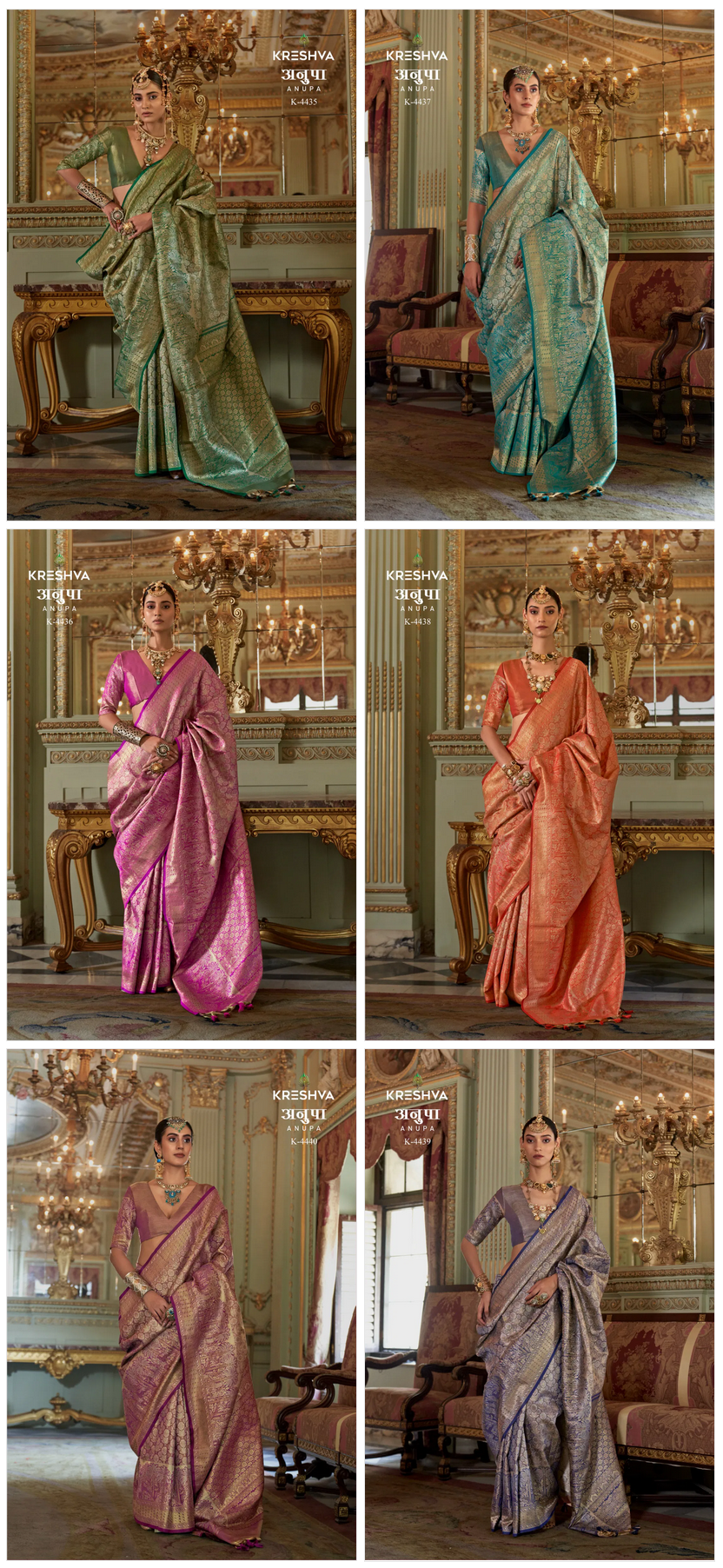 Kreshva Anupa Tissue Dharmavaram Silk Tradtional Wear Saree Collection Wholesale