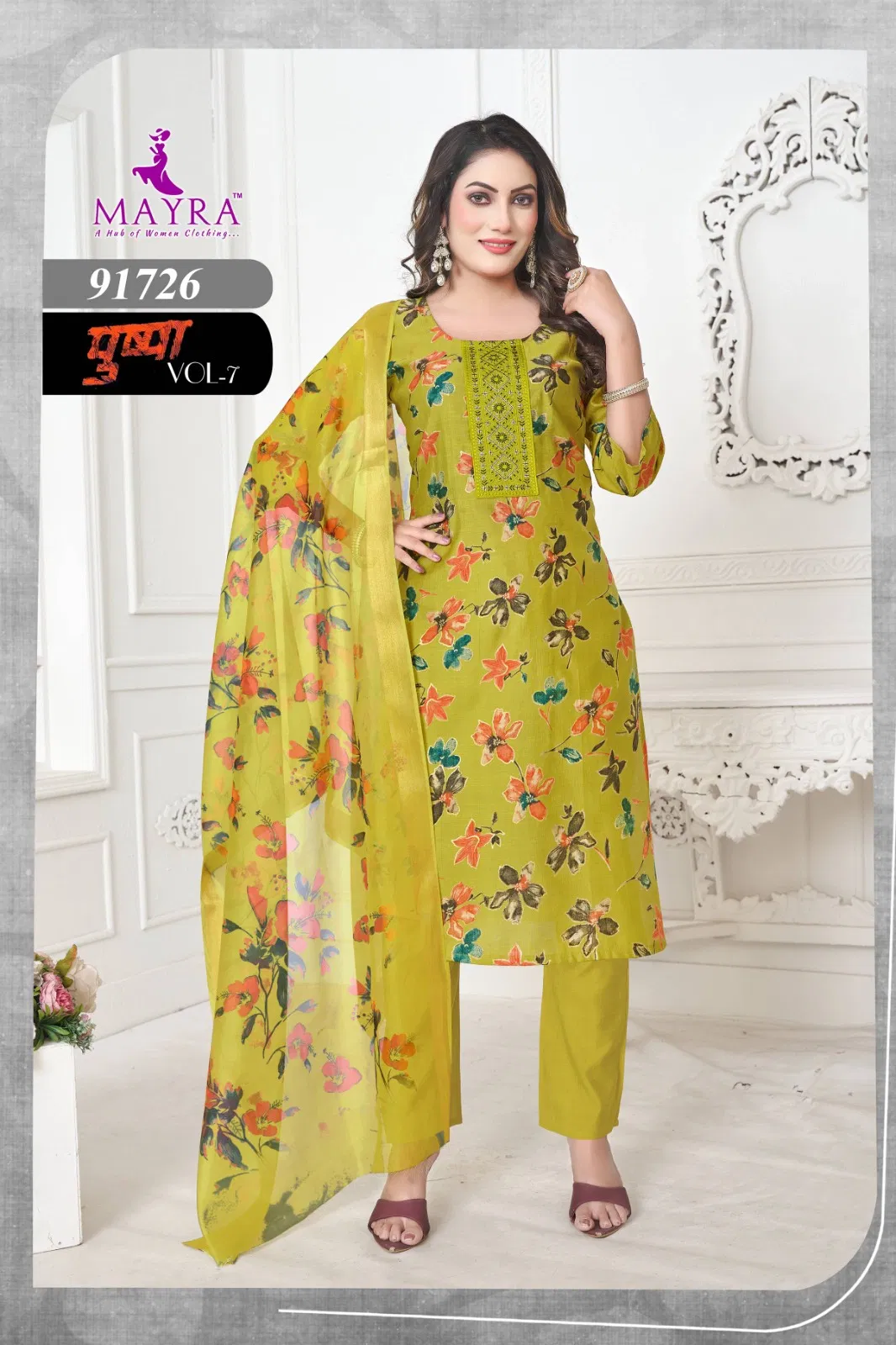 Mayra Pushpa 7 Vertican Print With Sequence Embroidery Top With Bottom And Dupatta Collection Wholesale wholesale ideal for resellers & boutiques.