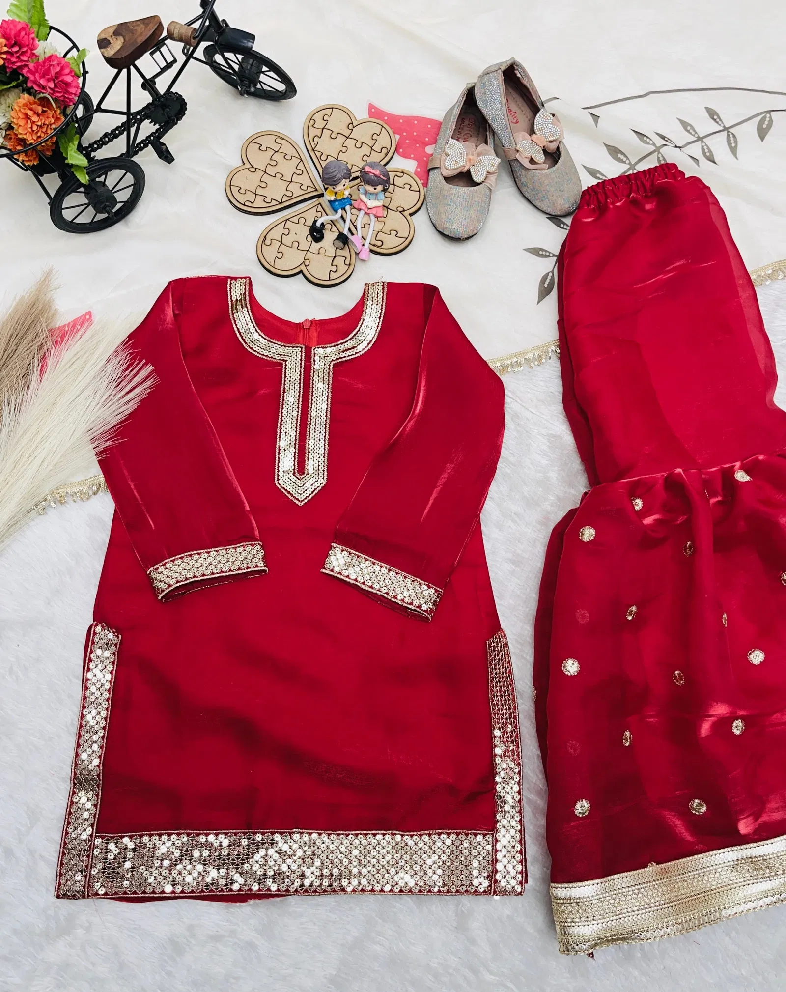TOPFABRICE :- Fendi Silk WORK :-Heavy Embroidery Sequence Work With Full Sleeve???? ZIPPER⛓️: Available INNER :- Micro Cotton TOP :-Full Stitched SHARARA FABRICE :- Fendi Silk WORK :-Heavy Embroidery Sequence Work INNER :- Micro Cotton SHARARA :-Full Stitched DUPATTA FABRICE :-Pure Organza Silk With Digital Print Work With Fourside fancy lace broder DUPATTA :-Full Stitched SIZE 3 Yrs | 4 Yrs | 5 Yrs | 6 Yrs | 7 Yrs | 8 Yrs | 9 Yrs | 10 Yrs | 11 Yrs | 12 Yrs | 13 Yrs | 14 Yrs | 15 Yrs | (Refer to Size Chart) |