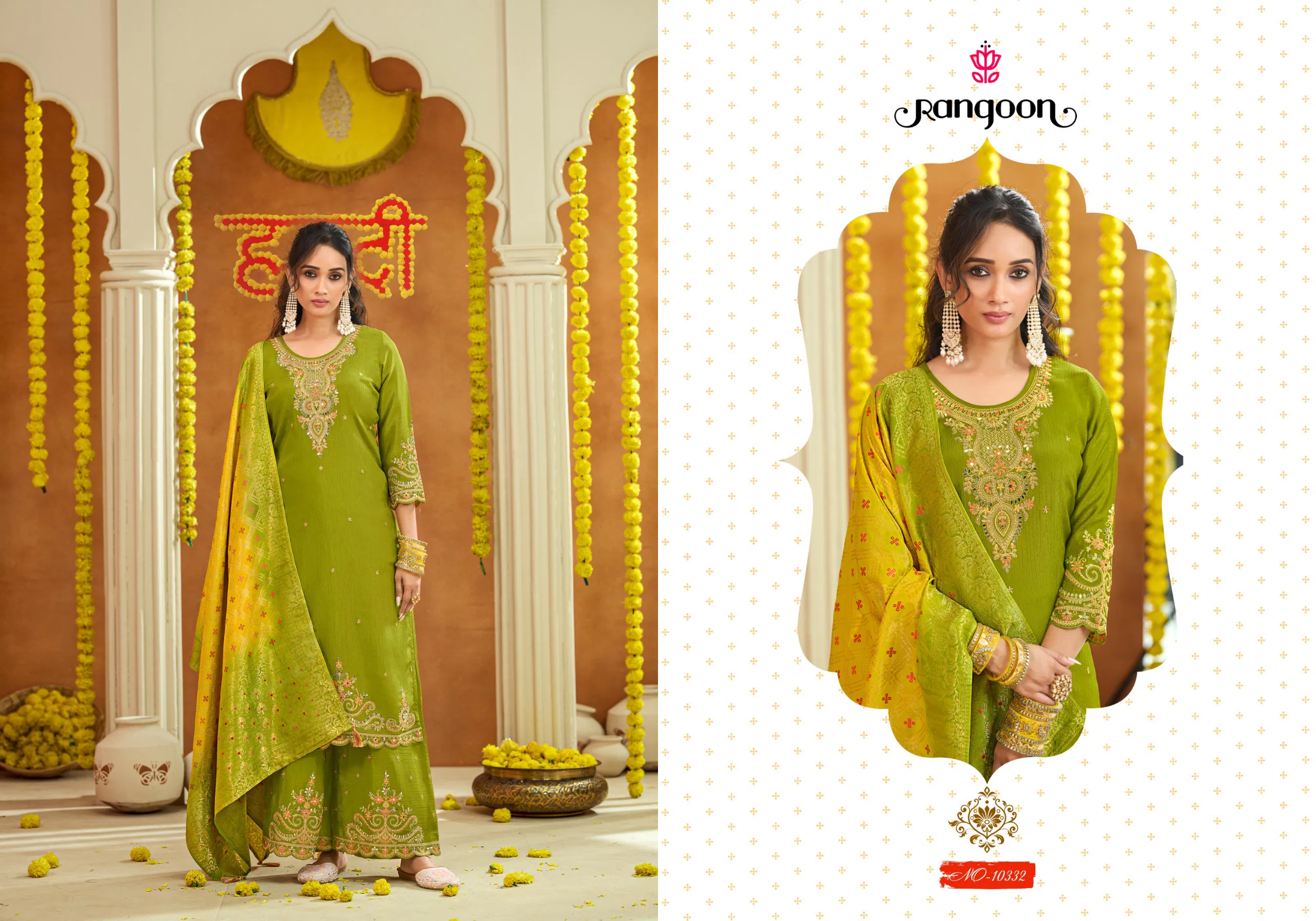Rangoon Haldi Mehendi Vol 2 Chinon Heavy Code Work Kurti Bottom With Dupatta Wholesale wholesale ideal for resellers & boutiques.