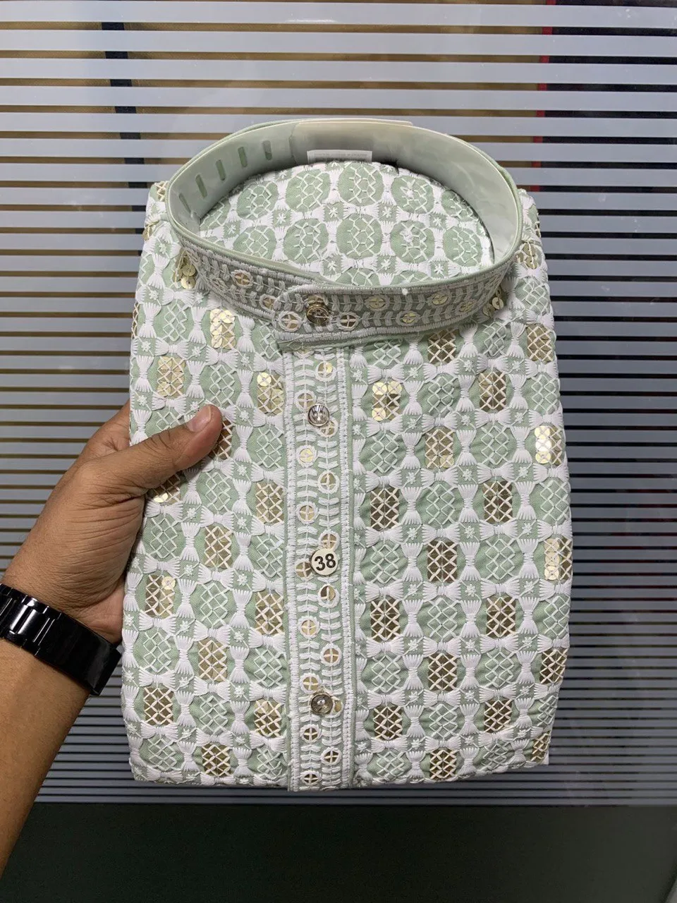 | Catalog | Shyam Vol 52 Reyon Sequence Work Kurta Pajama Men’s Wear |