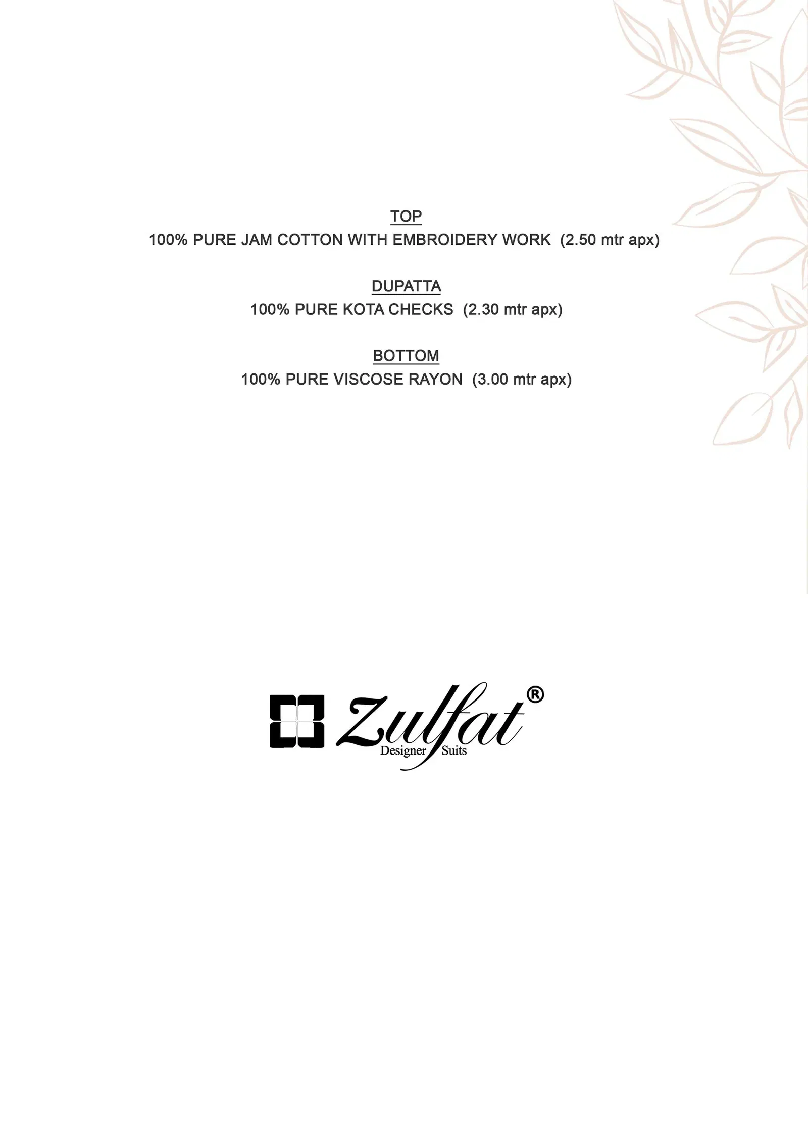 | Brand | Zulfat Designer Suit |