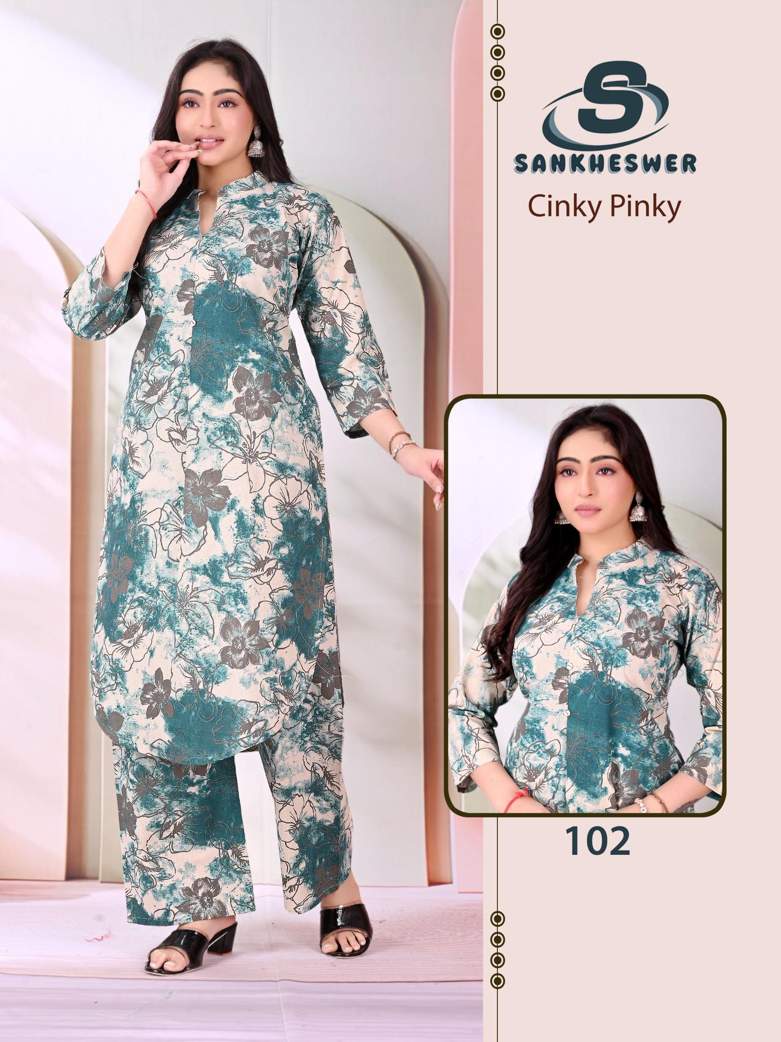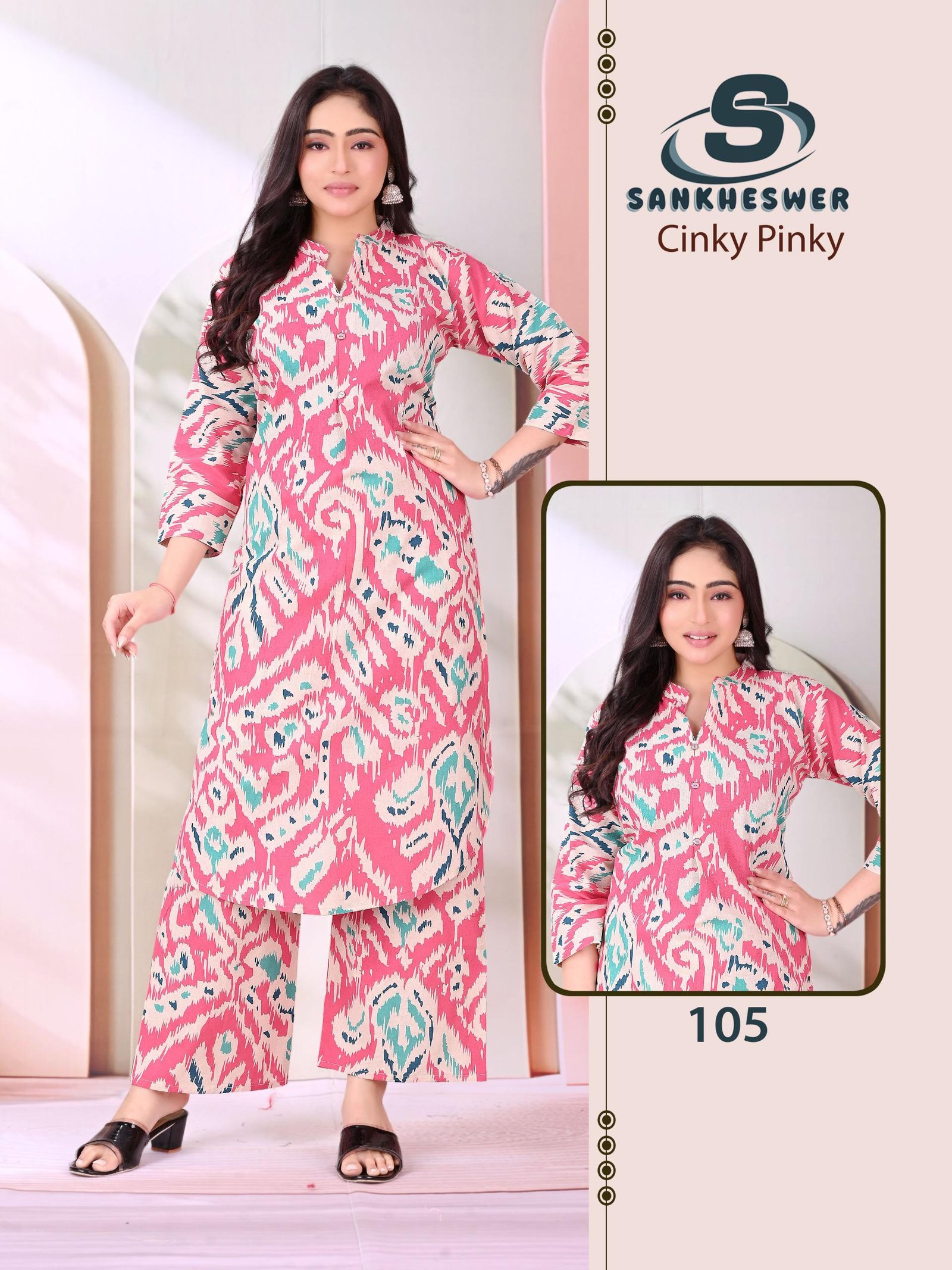Sankheswer Cinky Pinky Cotton Flex Casual Wear Top And Bottom Collection Wholesale