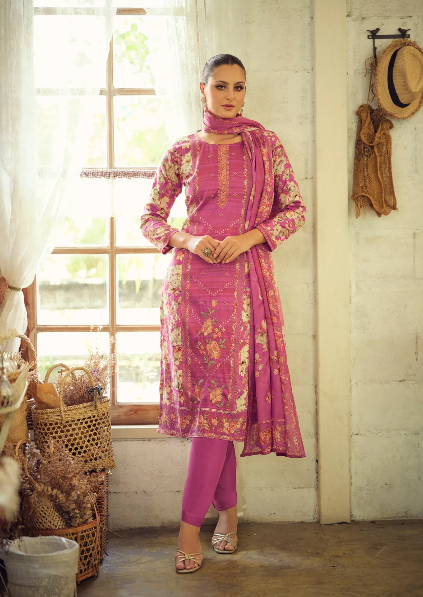 | Details | Top :- Pure Creamy Cotton Satin Intricate Self Embroidered And Digital Print | Bottom :- Pure Viscose Fine Count Canvas Rayon | Dupatta :- Pure Viscose Muslin Full Size Digital Printed |