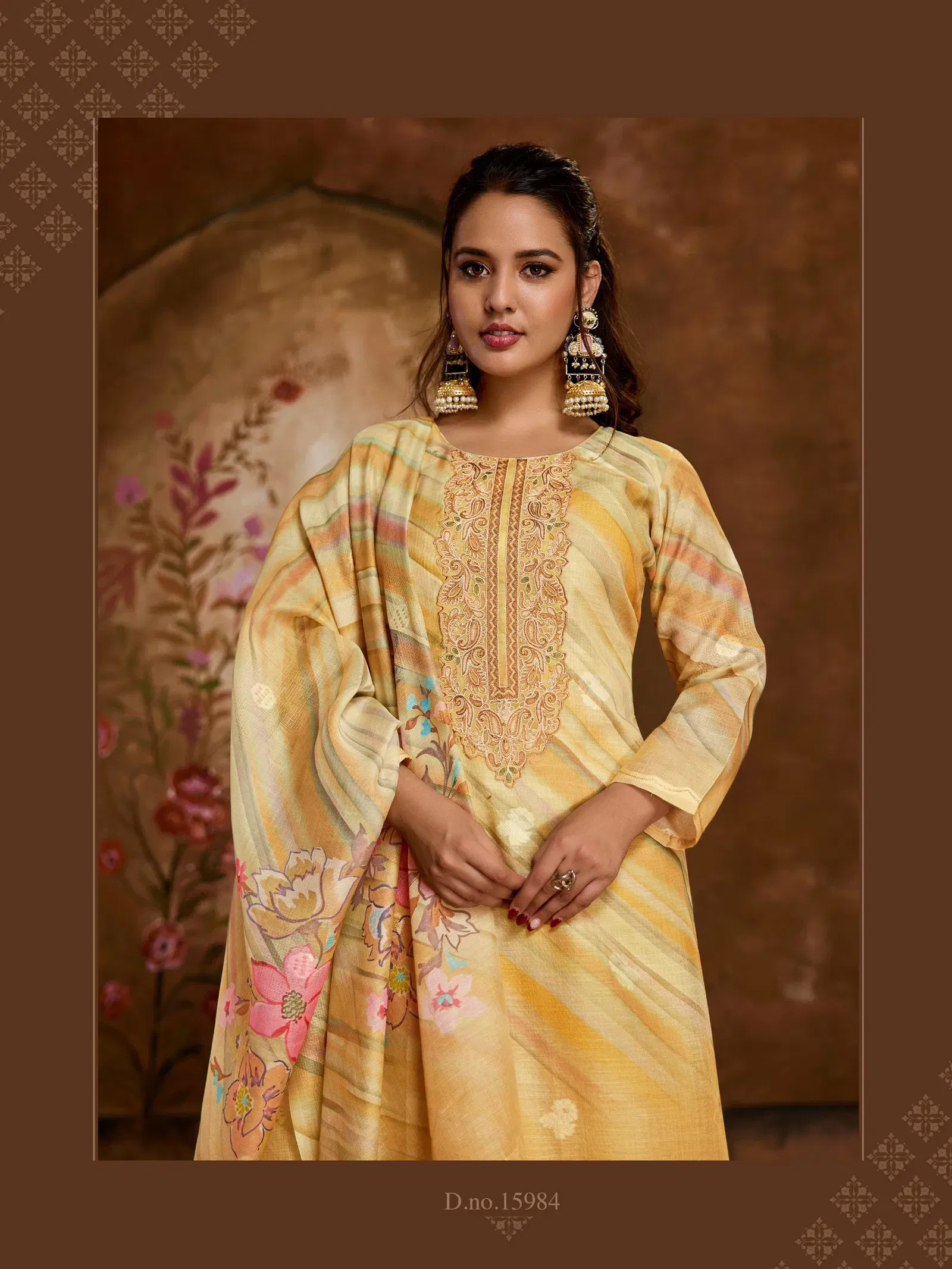 Top :- Pure Linen Jacquard Digital Print With Emrboidered Work And Handwork | Bottom :- Pure Cotton | Dupatta :- Pure linen Jacquard Digital Prints