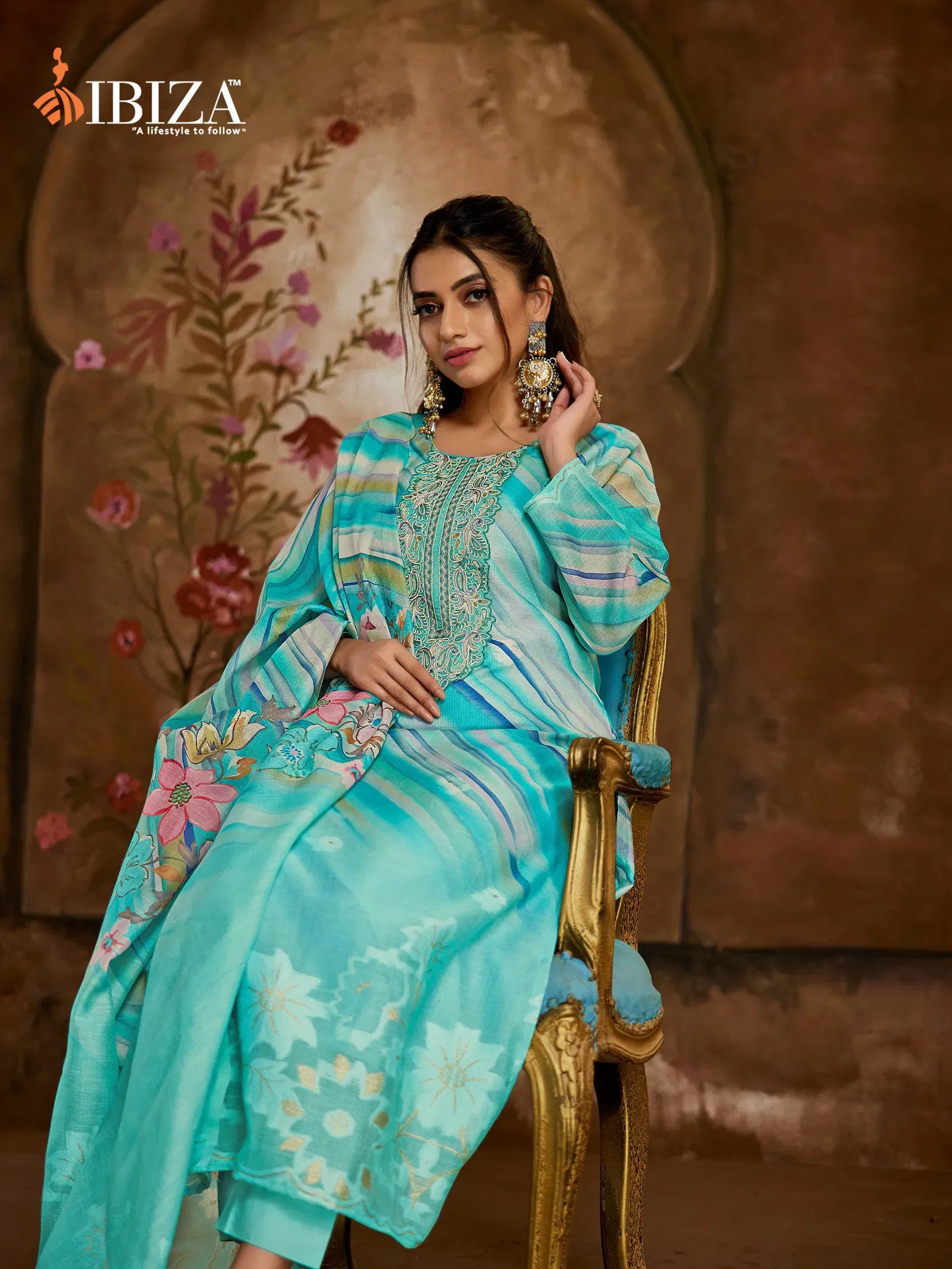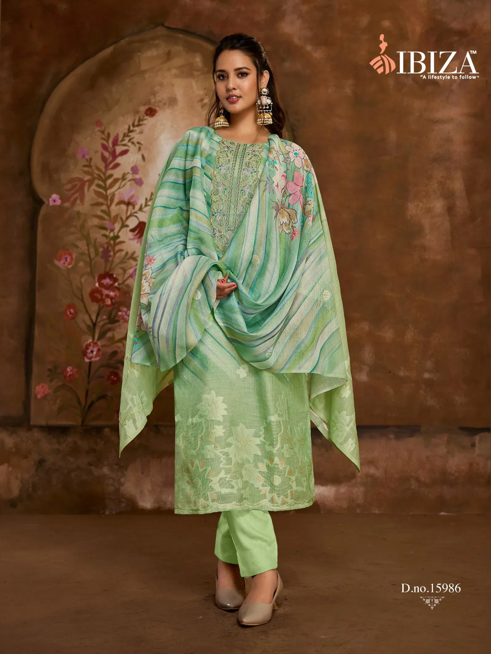 Ibiza Vesnavi Linen Jacquard Printed Embroidery Worked Salwar Kameez Wholesale