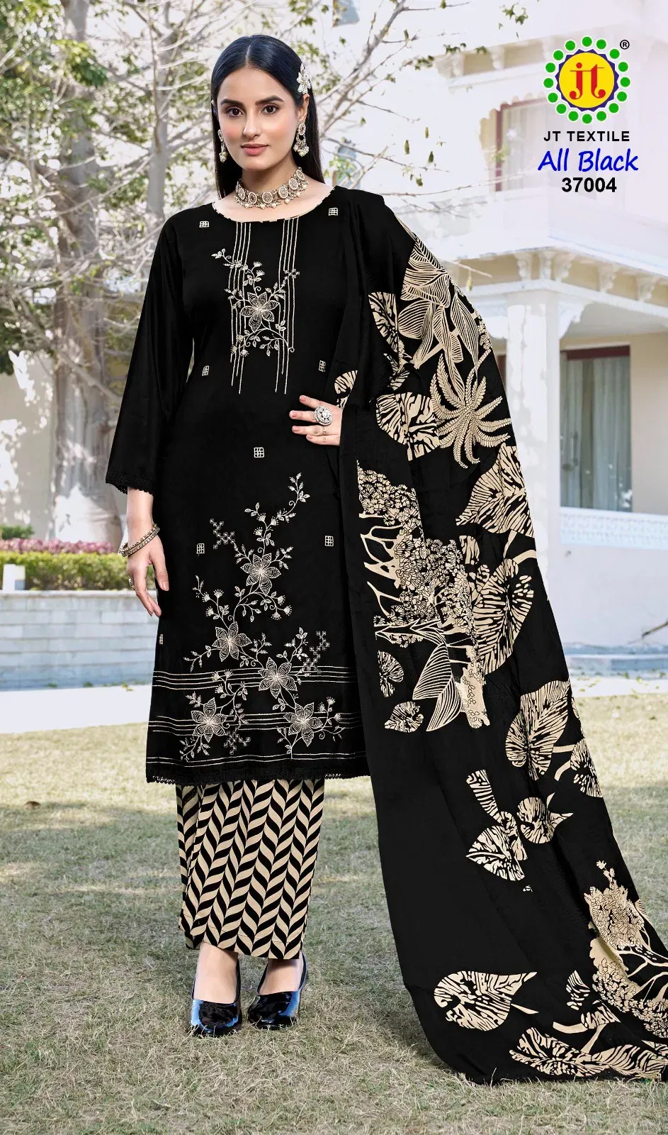 Jt All Black Vol 37 Rayon Sequence Embroidery Work Dress Material Wholesale
