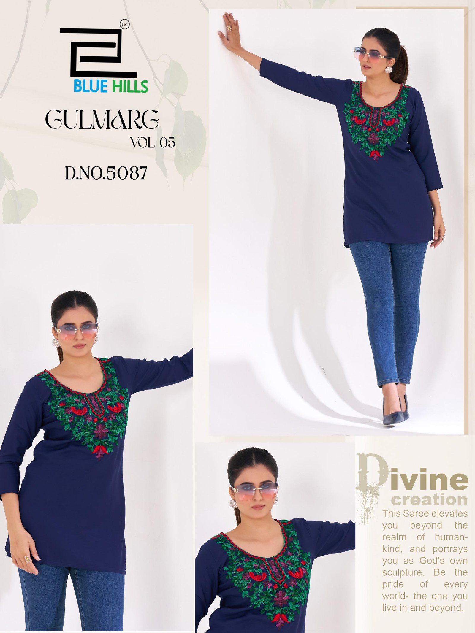 Blue Hills Gulmarg Vol 5 Rayon Thread Work Top Collection Wholesale