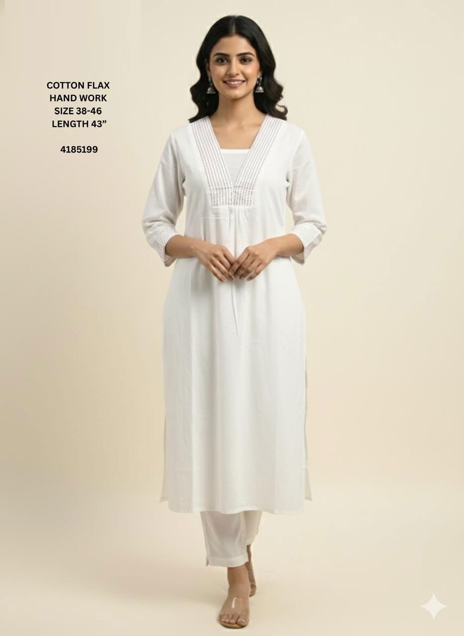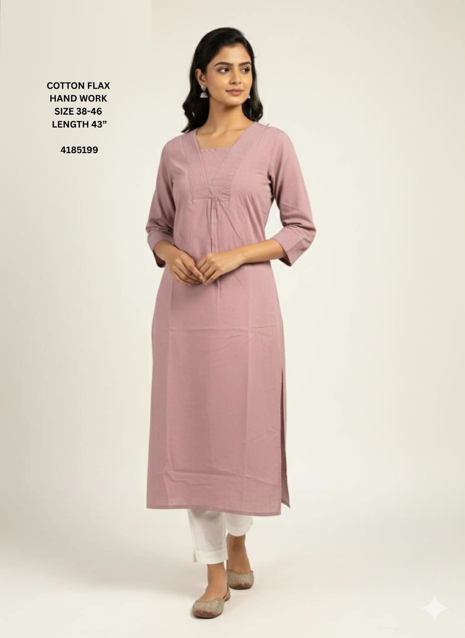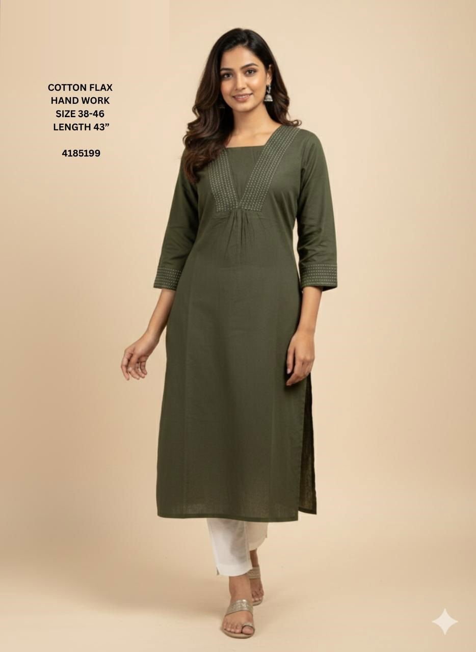 | Details | Top :- Cotton Flex Solid Colors Plain Kurtis With Katha Work On Neckline And Sleeves With One Side Pocket | Top Length :- 43″ | Size Set :- (38 To 46) | Buy Any Six Colours |