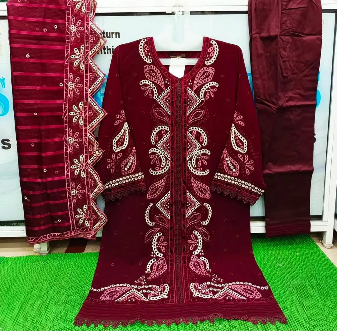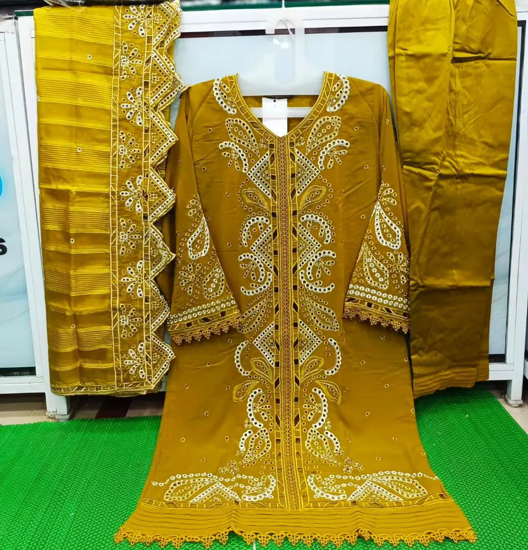 | Details | TOP :- lining orgeza with inner BOTTOM :- stretchable cotten. DUPATTA :- organza with embroidery. Size Set : ( 40 42 44 ) |