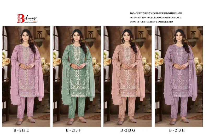 Bilqis B 213 E To H Chiffon With Embroidered Pakistani Salwar Kameez Wholesale
