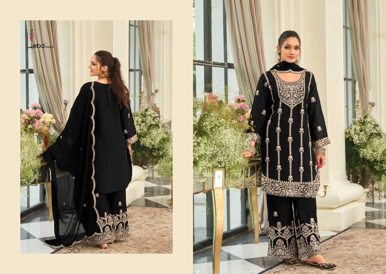 Eba Pallavi Black And White Chinon With Embroidery Top Bottom And Dupatta Collection Wholesale