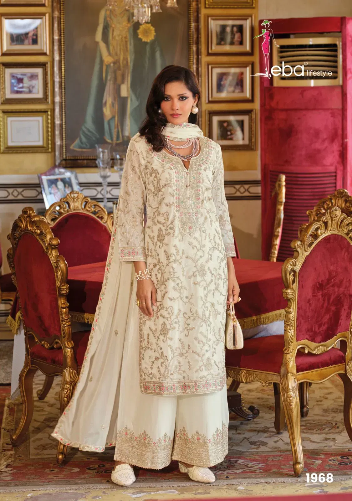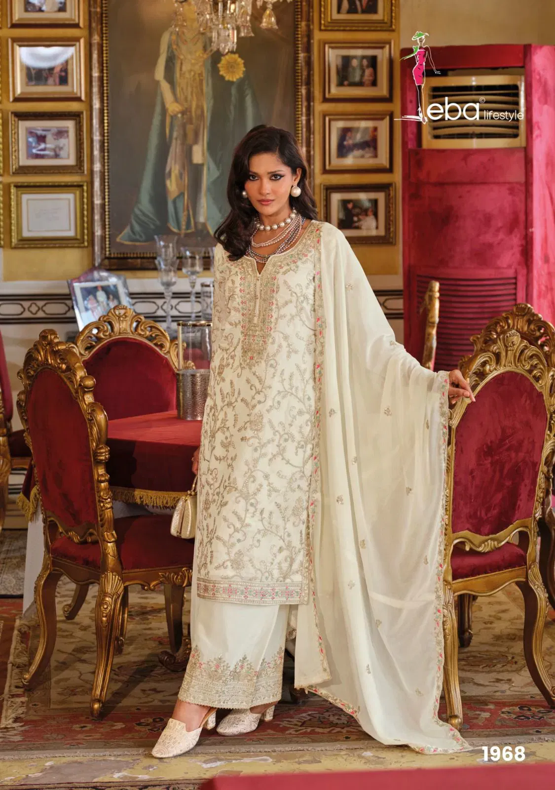 Eba Sangit Black And White Chinon Embroidery Top Bottom And Dupatta Collection Wholesale