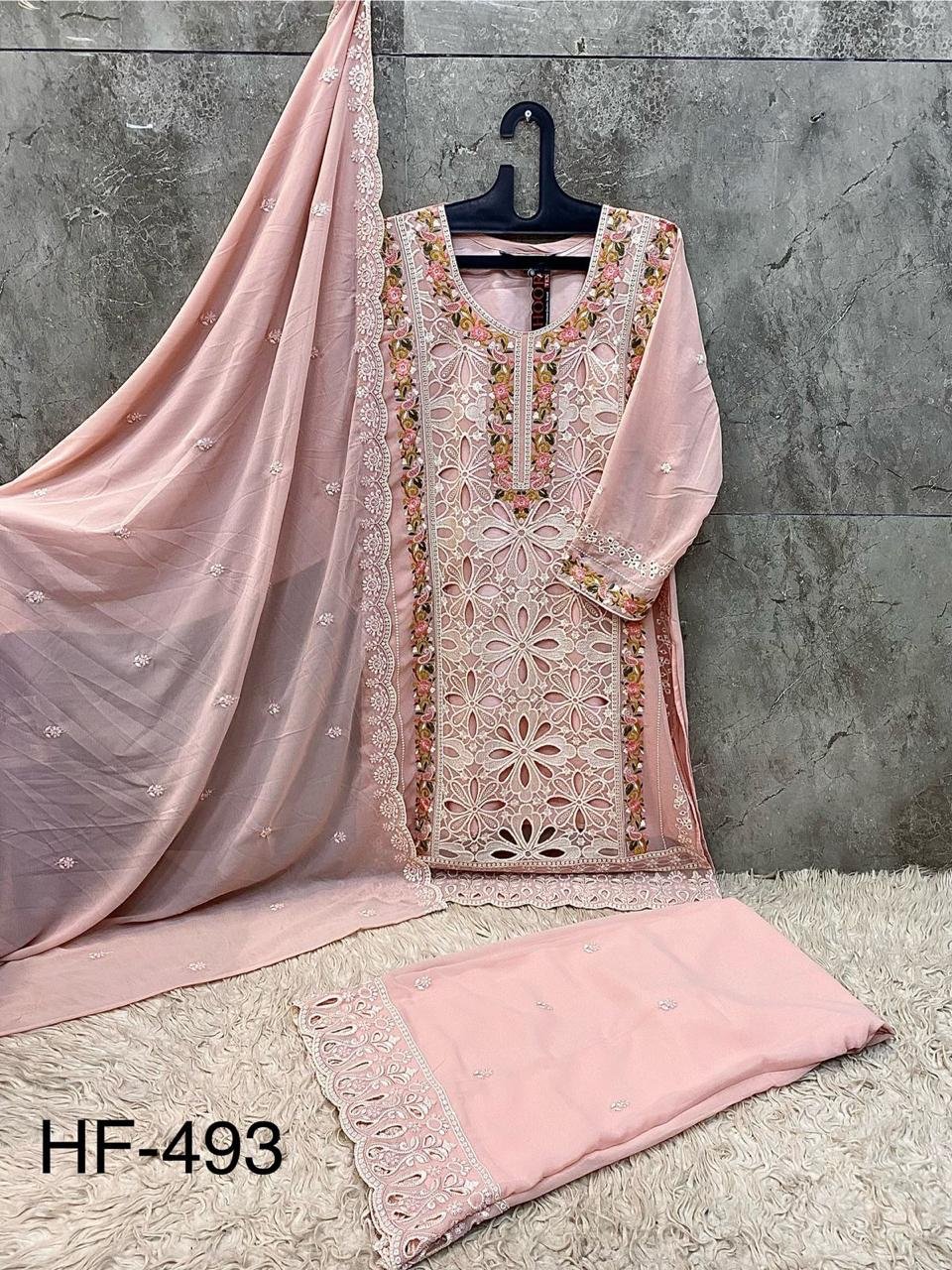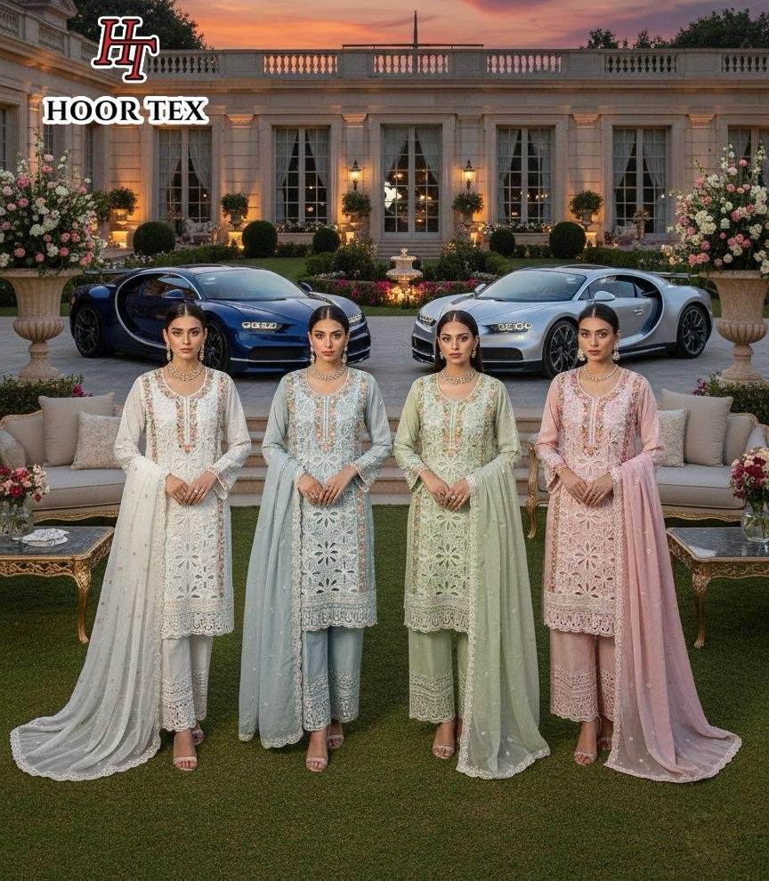 Hoor Tex Hf 493 A to D Heavy Georgette Designer Pakistani Salwar Suit Collection Wholesale