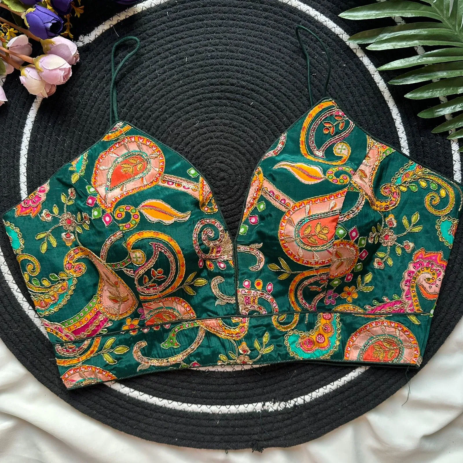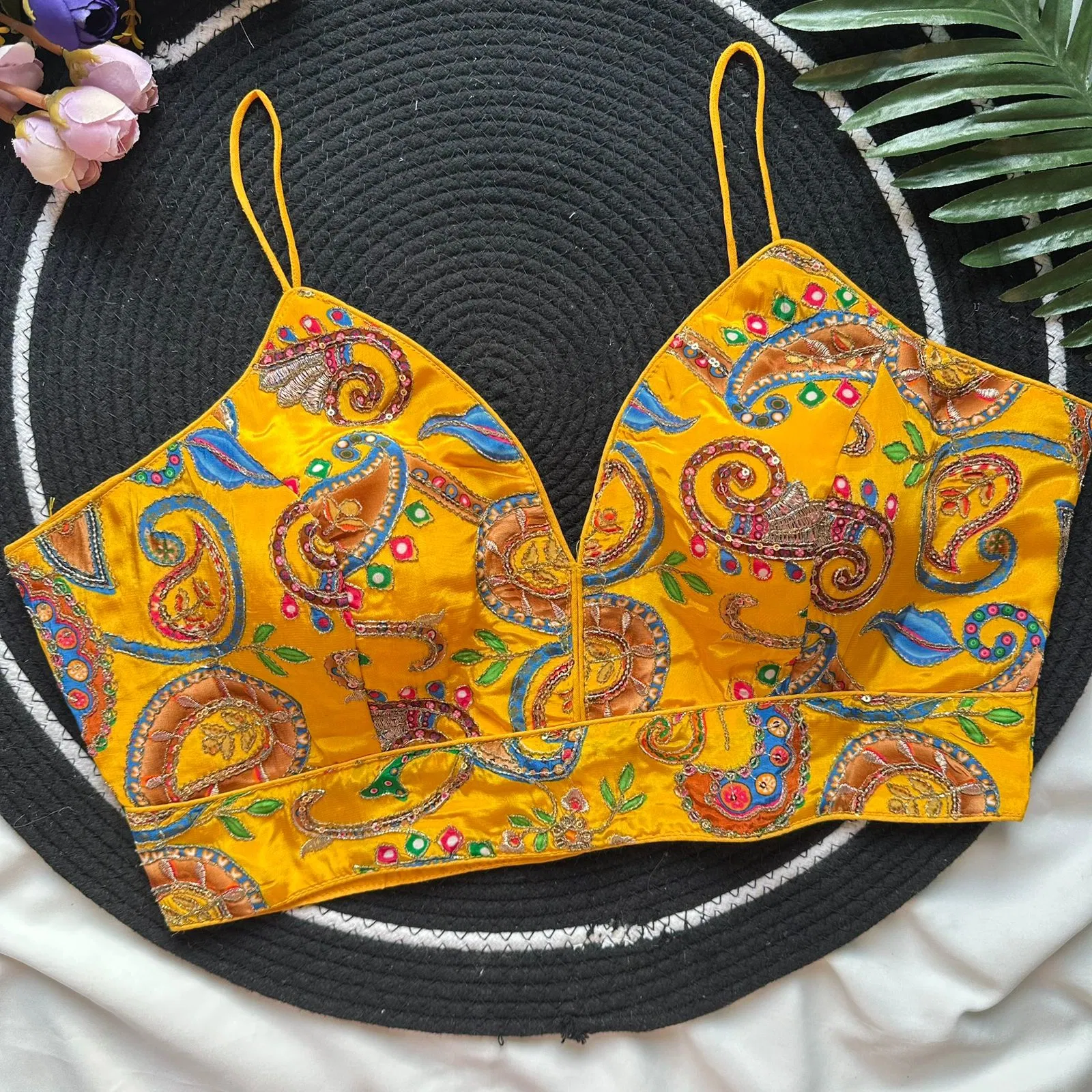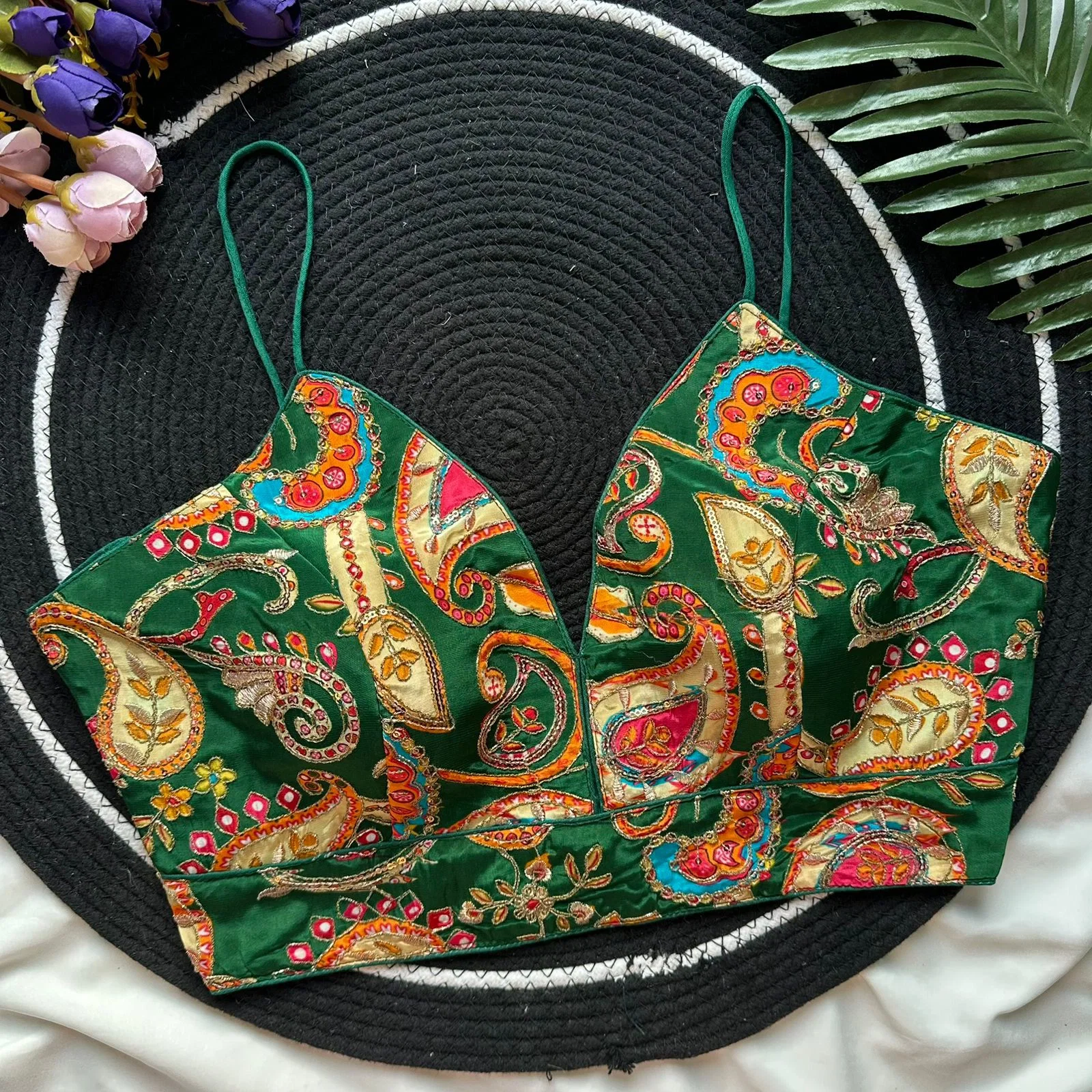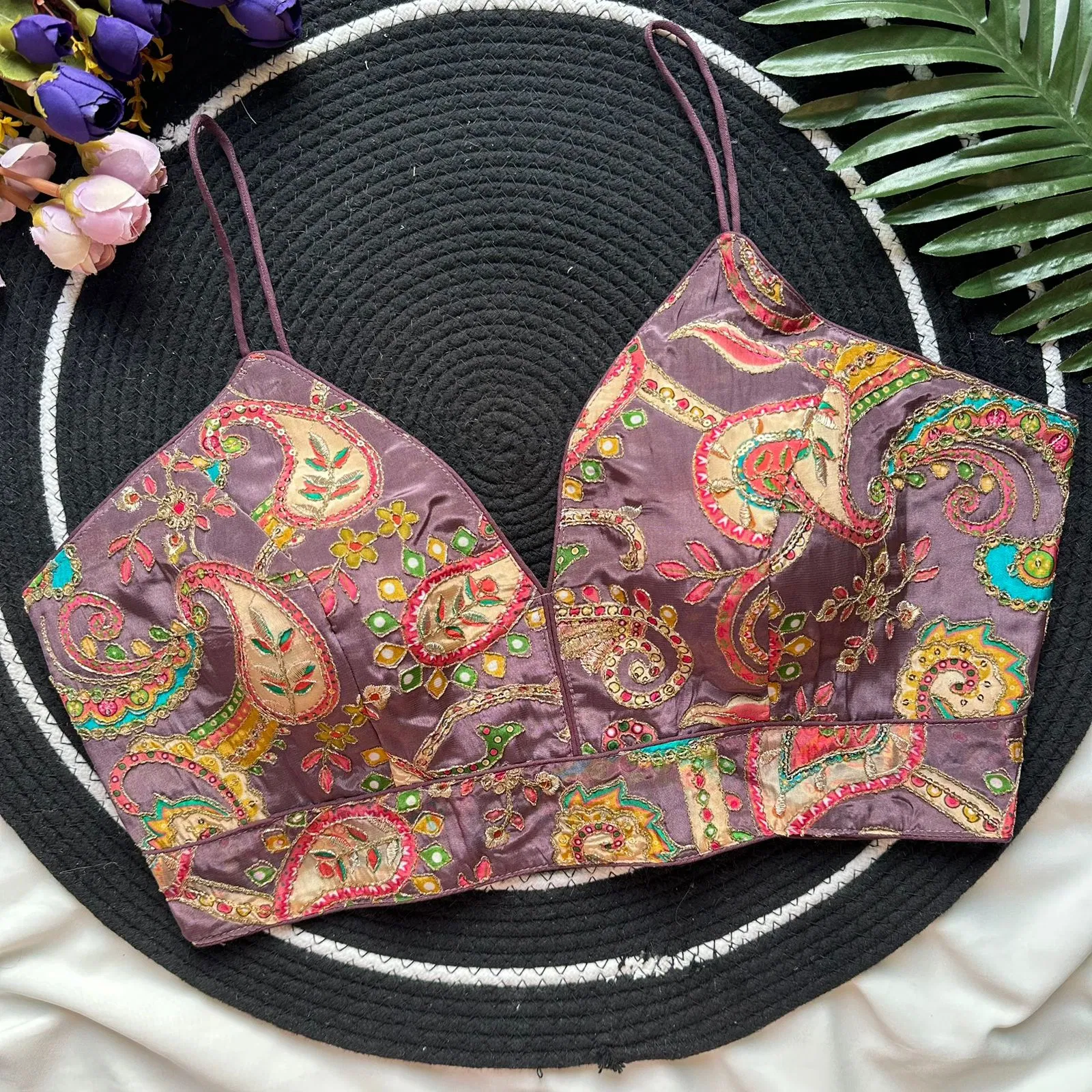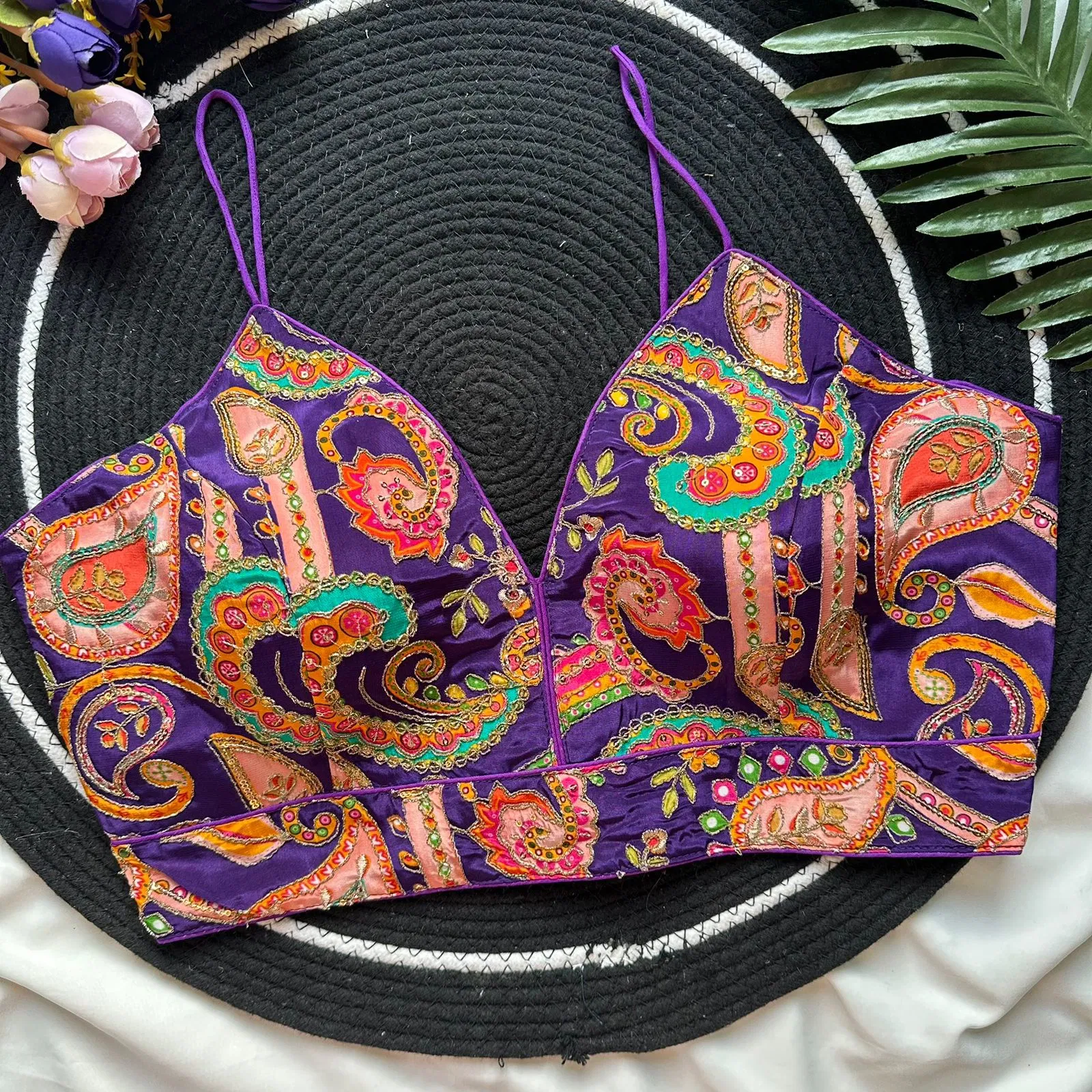 Fabric :- Pure Natural Crep | Size :- Upto 42 Chest Size | Sleeve :- Sleeveless Nuddle Strips | Pad :- Yes | Cotton :- Yes | Open :- Back Open
