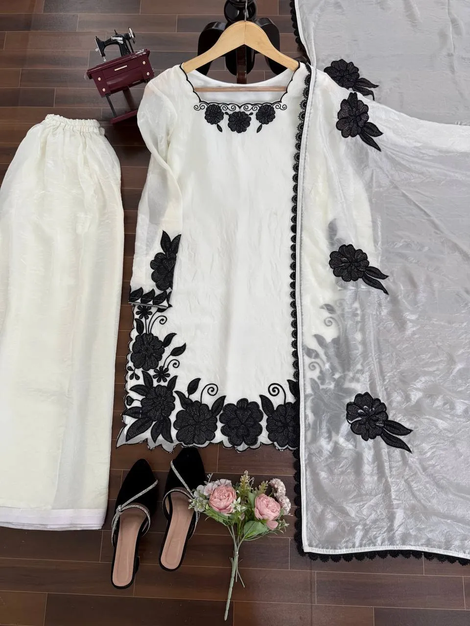 | Detail | Top – Fendy silk Lining-Soft Micro Cotton-Work- Thread with Sequnce -Bottom – Fendy silk Fit – Fully Stitched up to Size 44 with Stretchable Elastic Waist with Stretchable Elastic Waist, Length- 40 inches Dupatta – Fendy silk, Work- thread with Sequnce Length- 2.2 meters | Size – M (38), L (40), XL (42), XXL (44) |