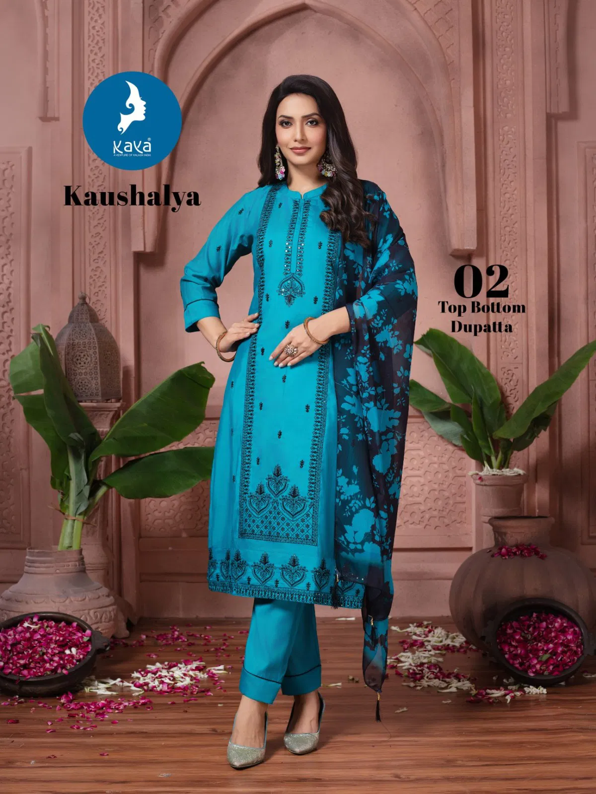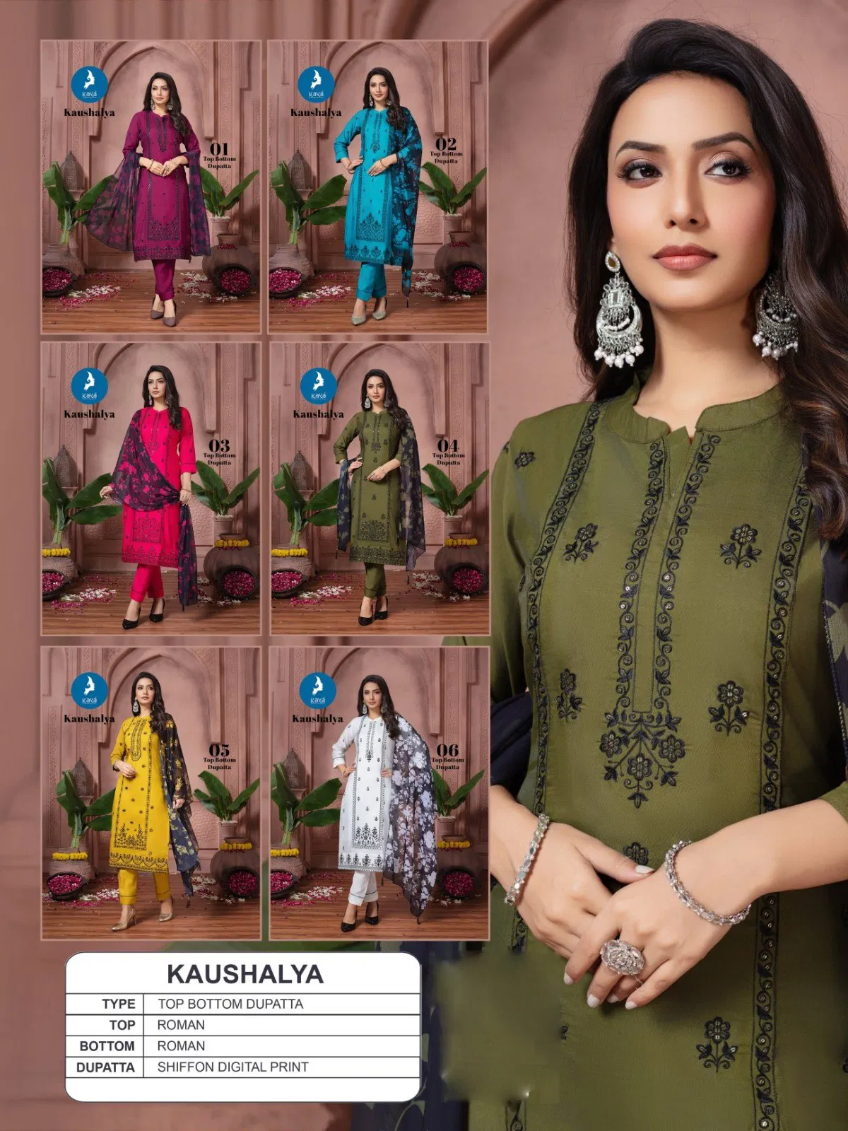Kaya Kaushalya Roman Silk With Work Kurti Pant And Dupatta Collection Wholesale