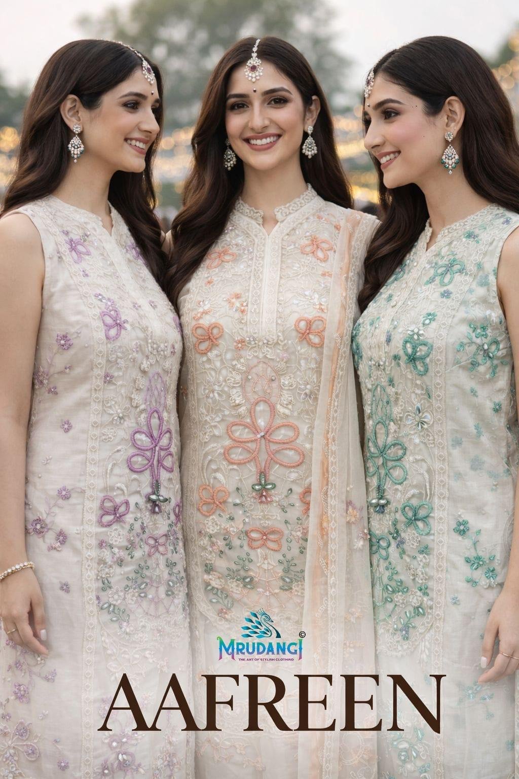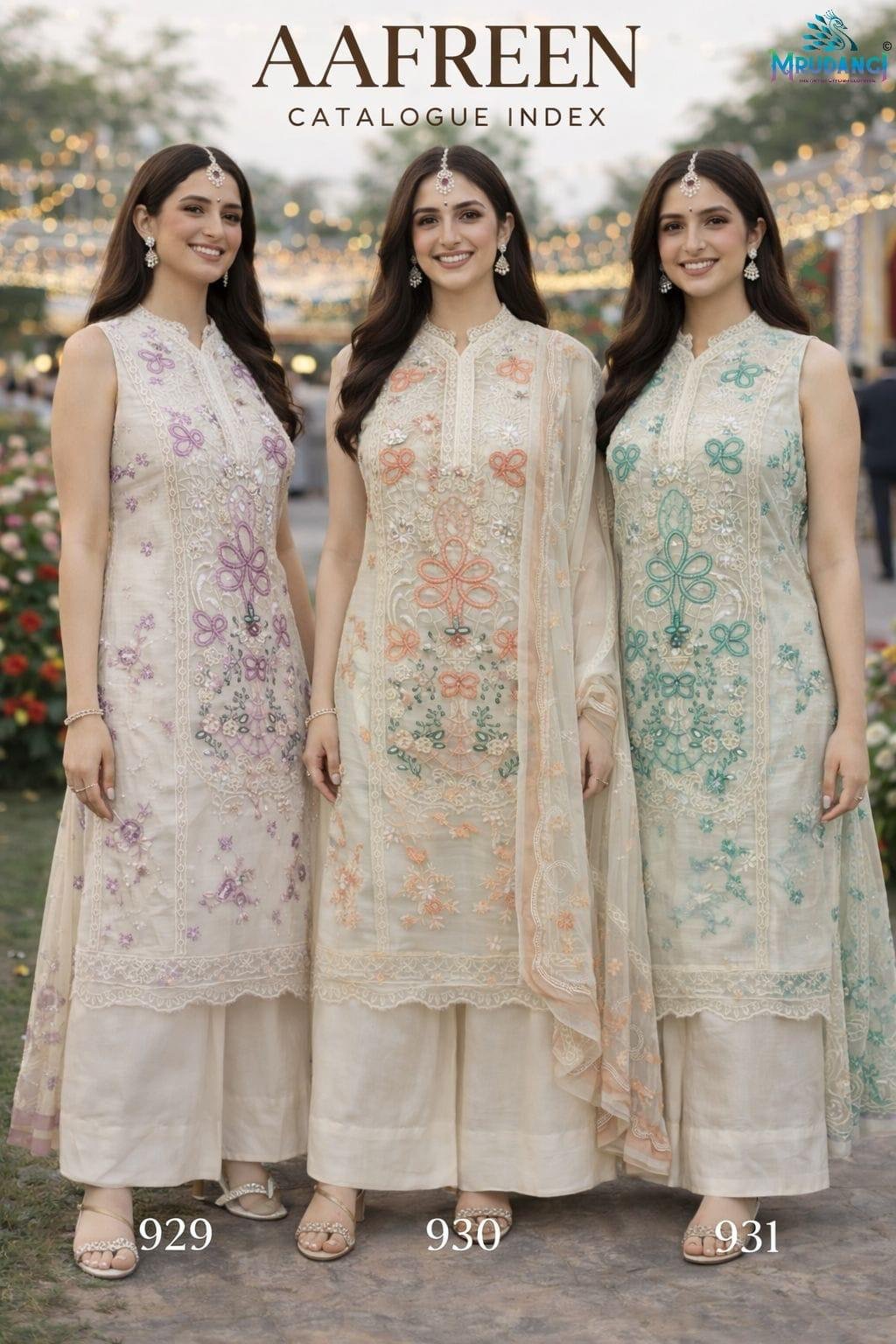 Mrudangi Aafreen Chiffon Embroidered Sequence Worked Top Bottom Dupatta Collection Wholesale