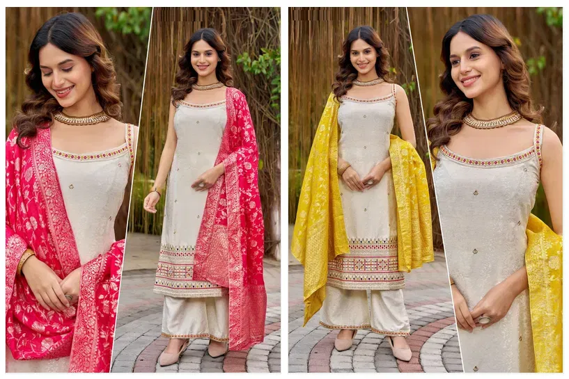 | Details | Top/Bottom :- Self Jacquard With Inner | Dupatta :- Banarasi Dupatta | Size Set :- (M To XXL) |