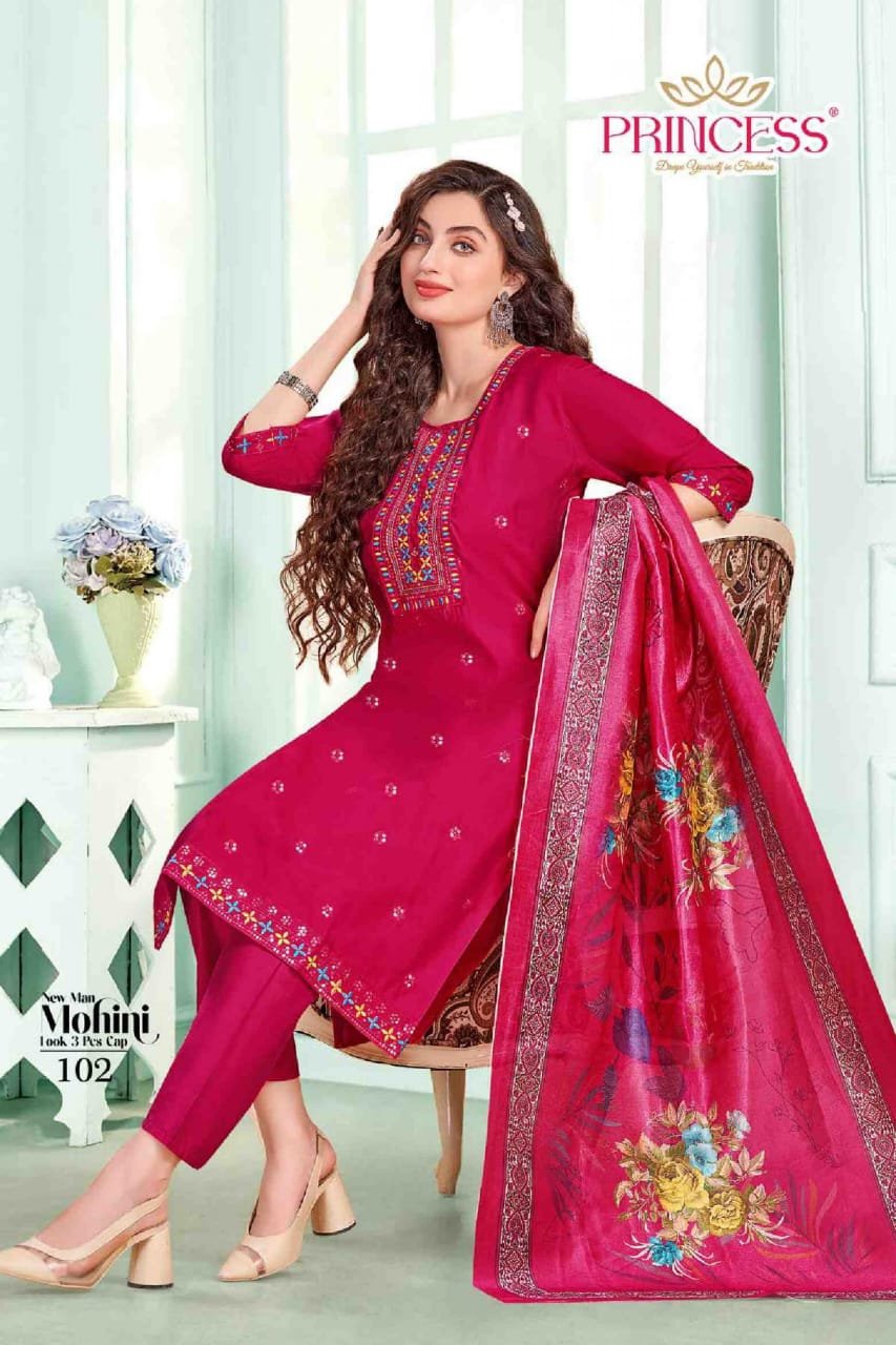 New Man Mohini Roman Silk Embroidery Worked Kurti With Bottom Dupatta Wholesale