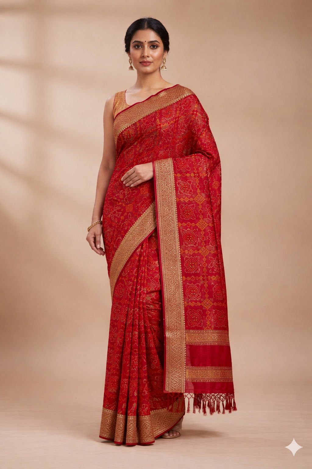 Saree Fabric: Georgette | Work: Bandhani Printed