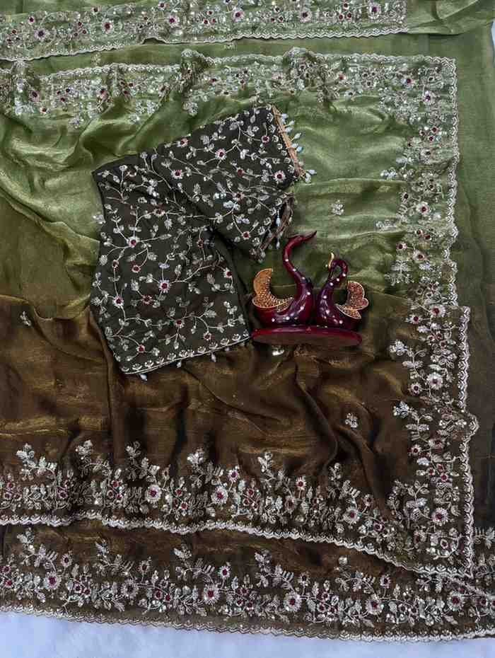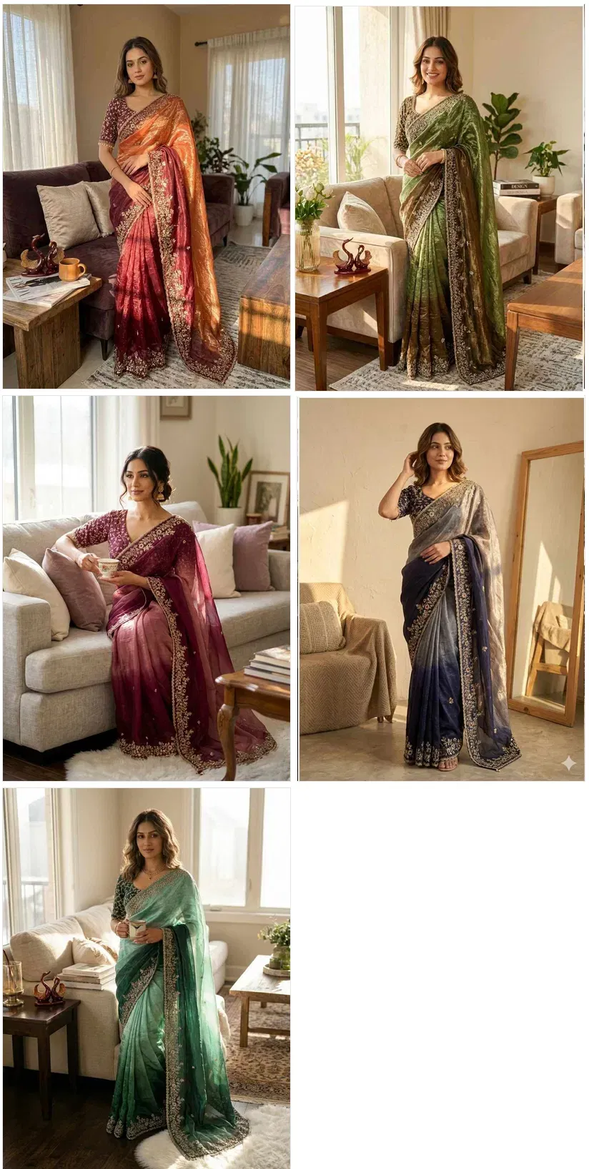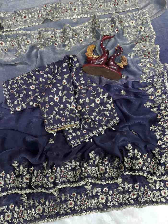 | Details | Saree Fabric: Soft Frendy Chiffon | Work: Beautiful Sequence Embroidery | Blouse Fabric: Mono Banglori(Full Stitched) | Work: Sequence |