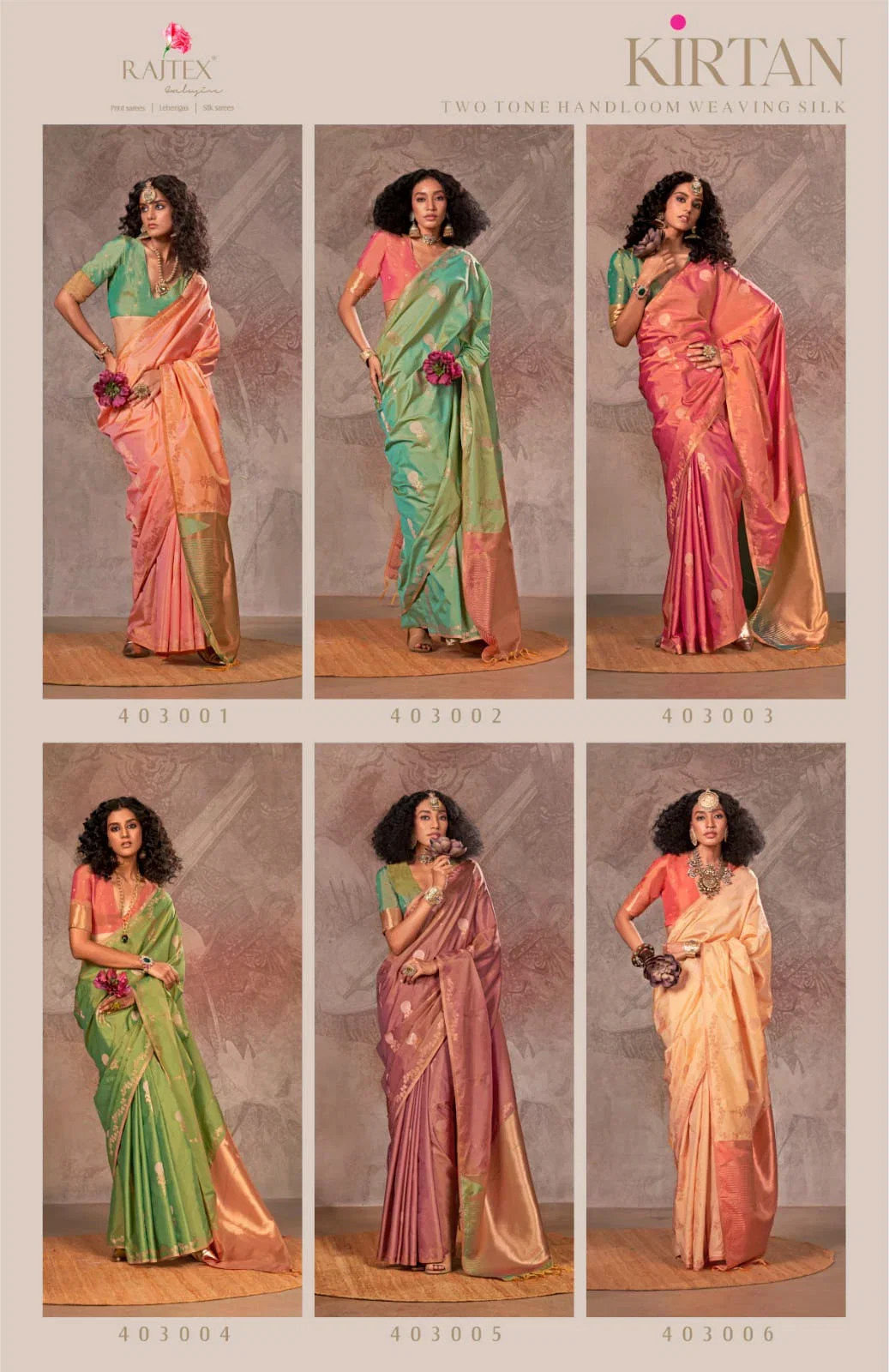Rajtex Kirtan Two Tone Silk Handloom Weaving Saree Collection Wholesale