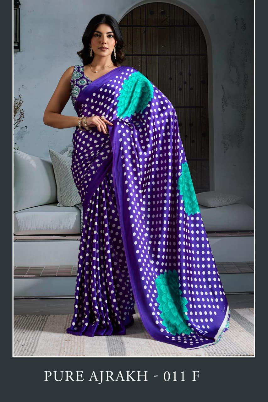 | Details | Fabric:- MODAL SATIN AJRAKH PRINT SAREES | |