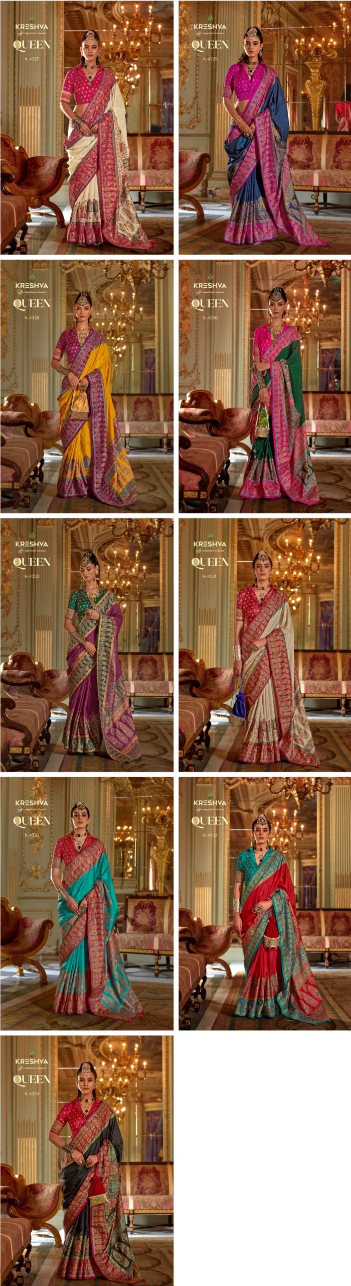 Kreshva Queen Pure Silk With Marmo Finish Designer Saree Collection Wholesale