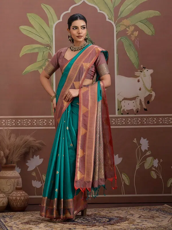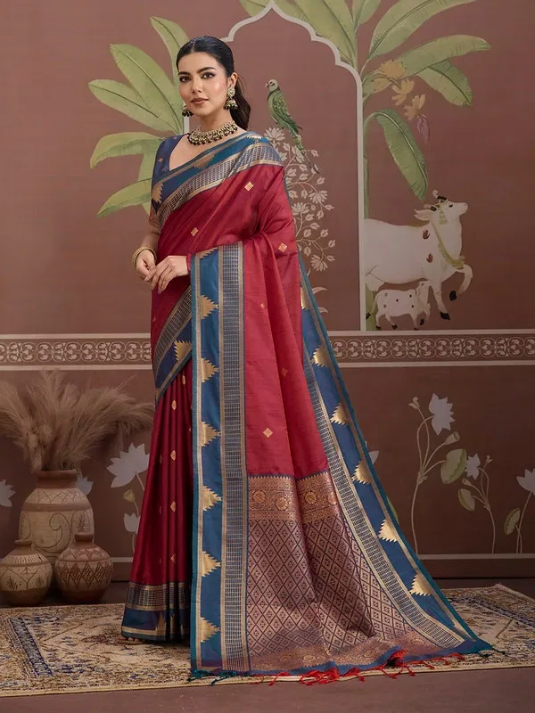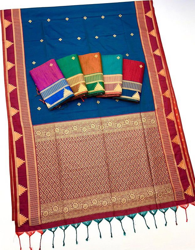 Rajtex Kontessa Temple Tussar Silk Handloom Weaving Saree Wholesale
