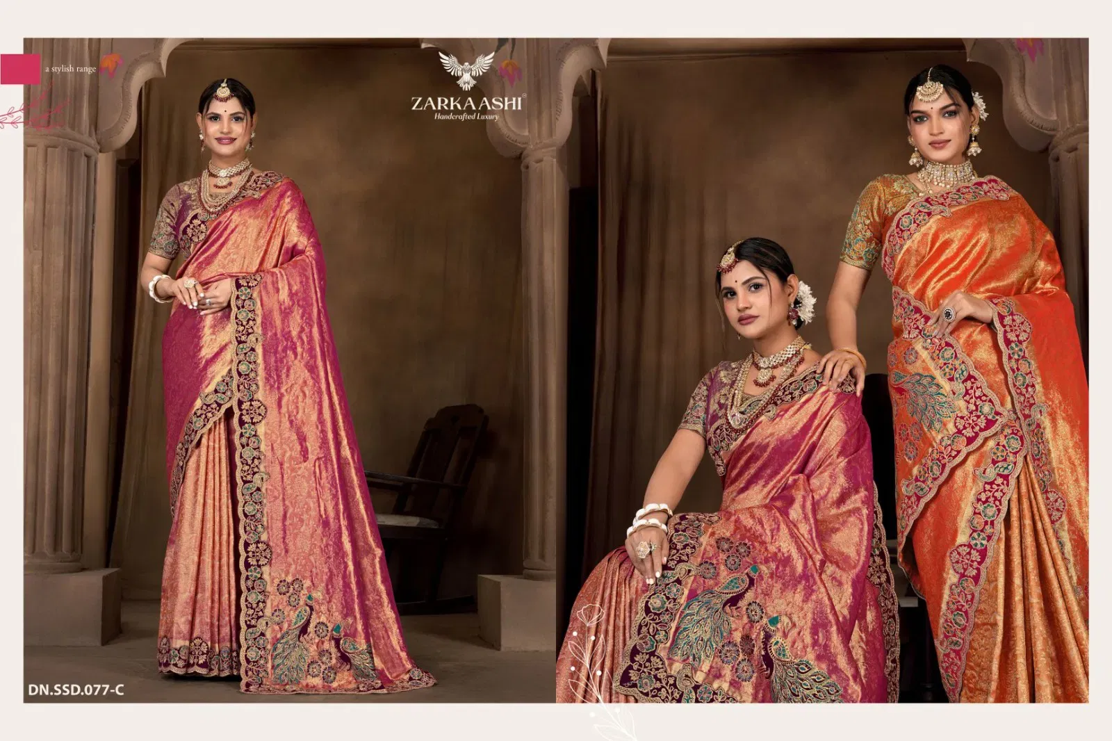Zarkaashi Morpankh Nylone Tissue Traditional Wear Saree Collection Wholesale